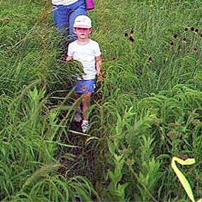 | The native grasses came up to Lenore's shoulder. | ![]() |