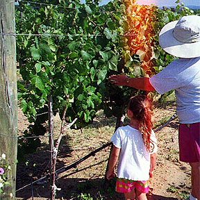 Showing Lenore where the grapes you buy