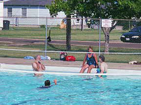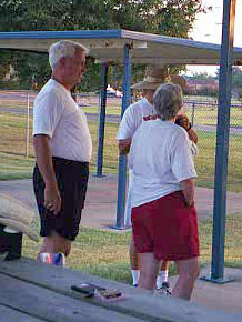 The gate finally got opened, and we set up the finish table on picnic tables near the swimming pool. This is the walk finish, the workers relaxing, and the pool.