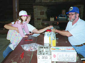 | Lenore started out with just a dress, but Carol decided it was too cool. So she added a pair of slacks which aren't exactly color coordinated. But comfort is what counts. |